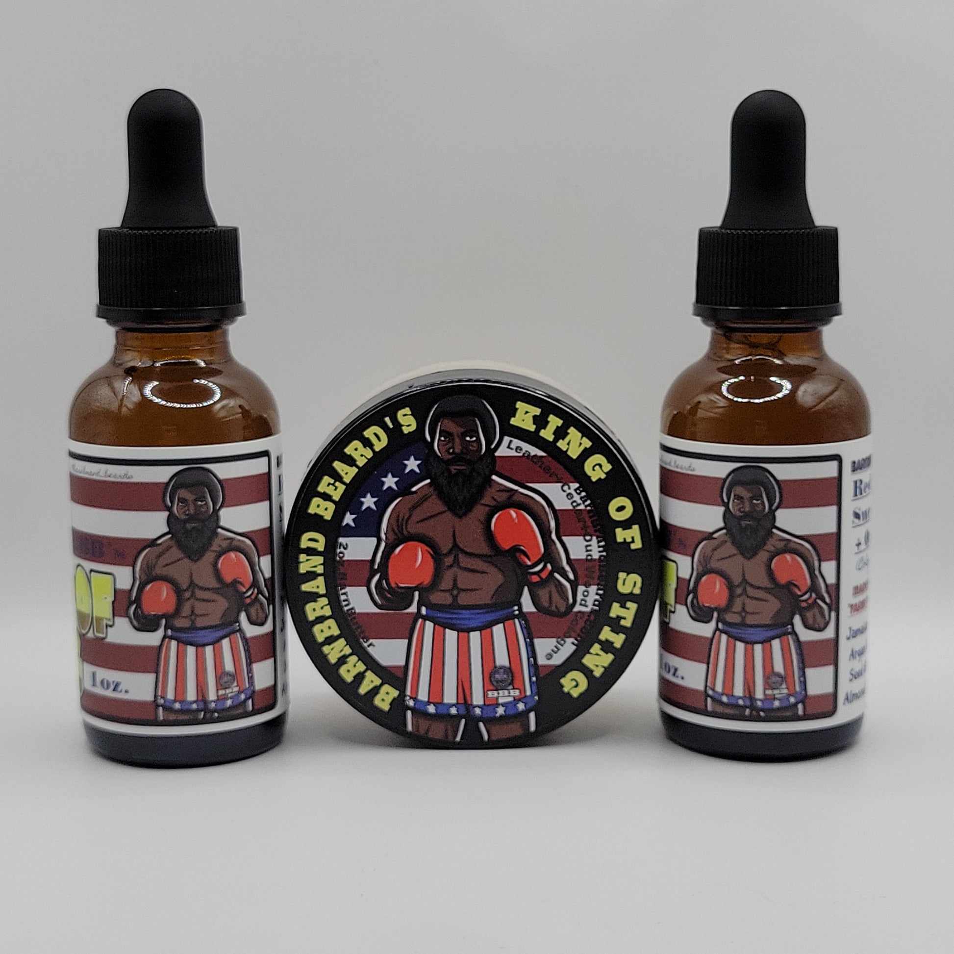 •Beardoil: 50% African Shea Nut Oil, Jamaican Black Castor Oil, Argan Kernal Oil, Jojoba Seed Oil, Lanolin Oil, Pecan Oil, MCT Oil, Sweet Almond Oil, Cucumber Seed Oil, Vitamin-E.